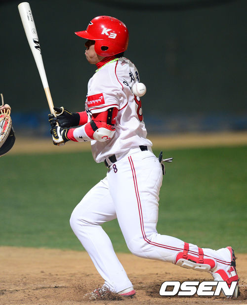 18일 오후 광주구장에서 '2013 한국야쿠르트 세븐 프로야구' KIA 타이거즈 대 LG 트윈스의 경기가 열렸다. 3회말 KIA 공격 무사 만루 상황 6번 안치홍이 LG 구원투수 임정우의 투구에 몸을 맞고 있다.