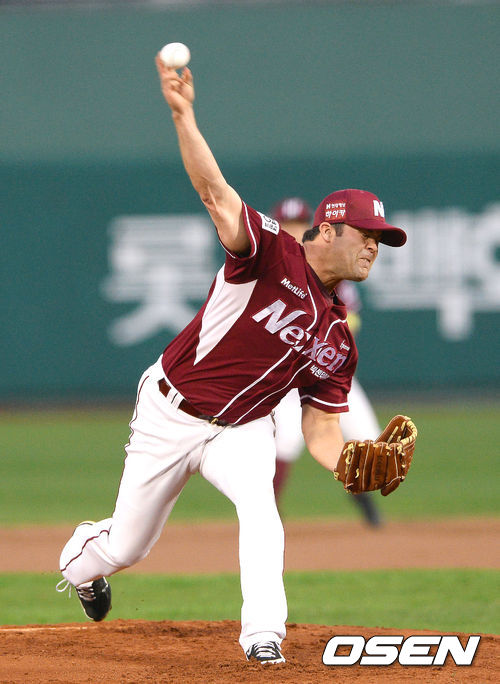 18일 오후 부산 사직구장에서 열린 '2013 한국야쿠르트 세븐 프로야구' 롯데 자이언츠와 넥센 히어로즈의 경기 1회말 넥센 선발투수 나이트가 역투하고 있다