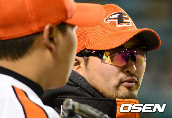 18일 오후 대전 한밭종합운동장 야구장에서 열린 2013 한국야쿠르트 세븐프로야구 한화 이글스와 NC 다이노스의 경기, 한화 안승민이 덕아웃에서 경기를 바라보고 있다.