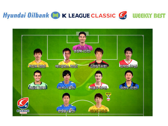 4-4-2 포메이션으로 선정된 베스트 11 공격수에는 한상운(울산)이 선정돼 김동섭과 투톱을 이뤘다. 한상운은 김신욱과 함께 울산의 확실한 공격루트로 자리매김, 1득점 1도움을 기록했다.