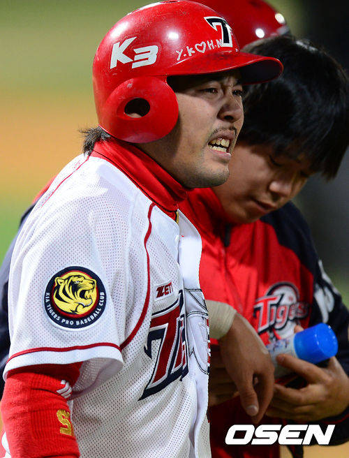 18일 오후 광주구장에서 '2013 한국야쿠르트 세븐 프로야구' KIA 타이거즈 대 LG 트윈스의 경기가 열렸다. 8회말 KIA 공격 2사 2루 상황 1번 이용규가 LG 투수 봉중근의 투구에 손가락을 맞고 괴로운 표정을 짓고 있다.