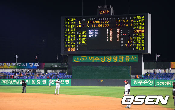 사진은 9회말 KIA 공격 2사 주자없는 상황 5번 최희섭 타석 때 전광판 모습.