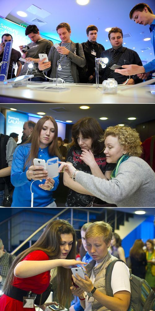 모스크바 ‘갤럭시S4’ 월드투어 행사에서 참석자들이 기기를 살펴보고 있는 모습. /삼성전자 제공.