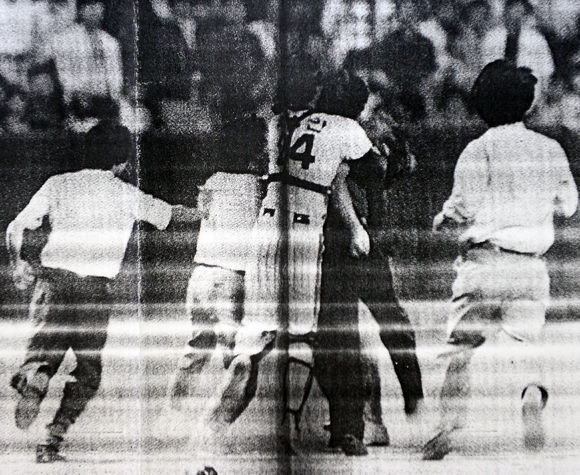 1만 1000여명의 관중들로 들어찬 그날 대전구장에는 이웅희 한국야구위원회(KBO) 총재와 박현식(고인) 심판위원장이 사태를 지켜봤다. 난동은 30여분간 계속 됐다.