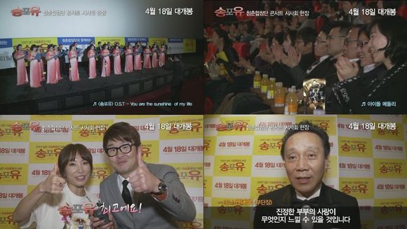 영상에는 ‘청춘합창단’의 노래와 시사회의 감동이 그대로 담겨있다. 영화 상영 후 윤형빈, 정경미 부부는 “가족의 의미를 또 부부의 의미를 다시 한 번 떠올려 볼 수 있는 시간을 갖게 해줄 영화”라며 “온 가족이 함께 보는 영화”로 추천했다.