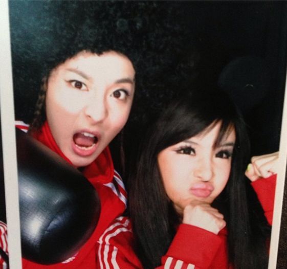 사진 속 산다라박과 박봄은 빨간 크레이닝복을 맞춰 입은 채 장난기 가득한 표정을 짓고 있다. 두 사람은 익살스런 표정에도 귀여운 매력을 뽐내 눈길을 끈다.