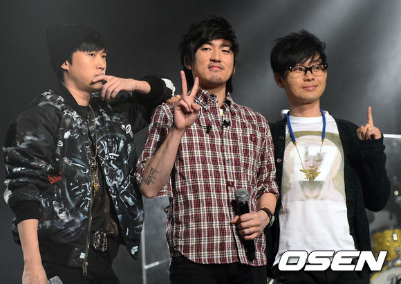 19일 오후 서울 서교동 브이홀에서 진행된 솔튼페이퍼 첫 EP앨범 '퍼스트(SALTNPAPER first)' 발매 기념 쇼케이스에서 타블로, 솔튼페이퍼, 이승환이 포토타임을 갖고 있다.