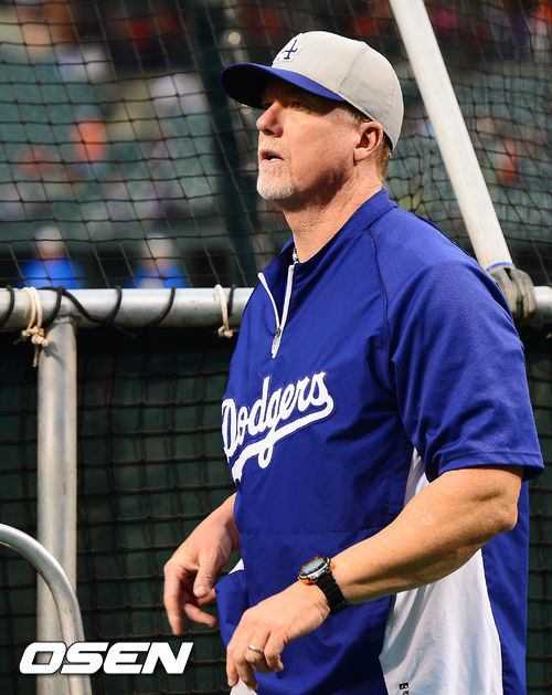 20일 오전(이하 한국시간) 미국 메릴랜드주 볼티모어 오리올 파크에서 ‘2013 메이저리그’ 볼티모어 오리올스와 LA 다저스의 경기가 열릴 예정인 가운데 양팀 훈련시간에 LA 다저스 마크 맥과이어 타격 코치가 선수들의 타격연습때 지도를 하고 있다.
