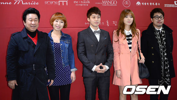 20일 오전 서울 삼성동 컨벤션 디아망에서 열리는 개그맨 김준현 결혼식장을 찾은 임하룡, 오나미, 허경환, 신보라, 양선일이 포토타임을 갖고 있다.
