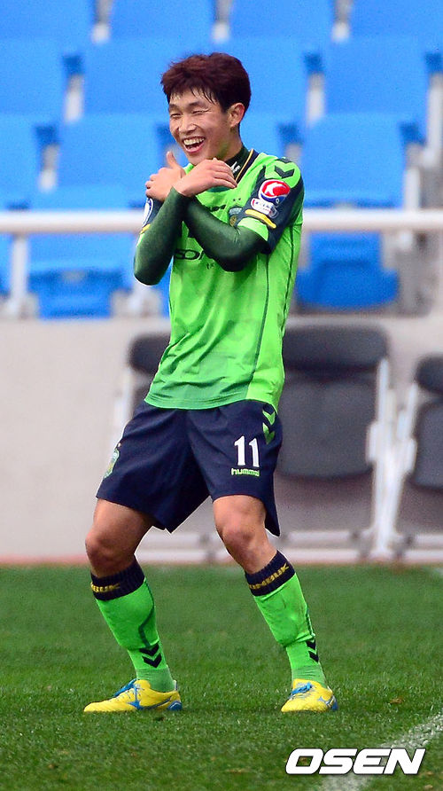 20일 오후 인천축구전용경기장에서 열린 '현대오일뱅크 K리그 클래식 2013' 8라운드 인천 유나이티드와 전북 현대의 경기 전반 전북 이승기가 선제골을 넣고 시건방 춤을 추고 있다.