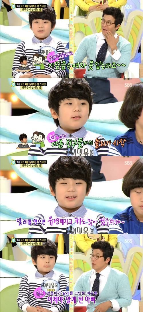 믿음은 "우리 반에 말썽꾸러기 친구들이 있는데 만날 얼레리꼴레리라고 놀릴 때가 제일 싫다"며 "얼마 전까지 발레를 배웠는데 친구가 내 발레복을 보고 '믿음이는 여자 옷 입는다'면서 킥킥 웃었다"고 설명했다.