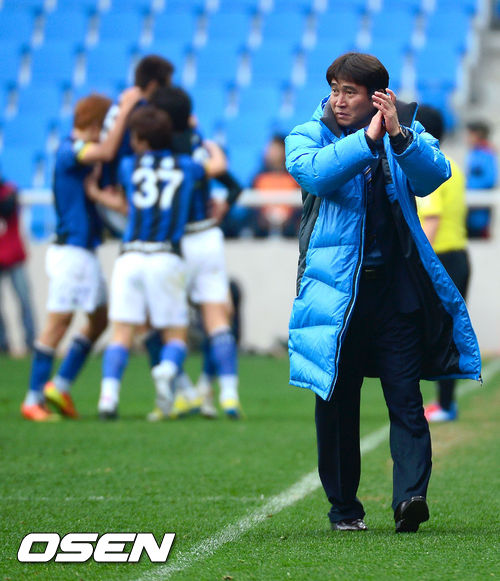 경기 후반 인천 김봉길 감독이 이효균이 추가골을 넣자 기뻐하고 있다. / youngrae@osen.co.kr