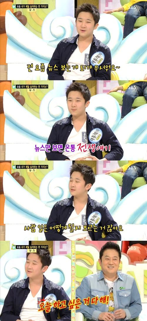 최근 박종혁은 전쟁 걱정에 북한관련 카페까지 가입했다. 박종혁은 "학교에 가면 친구들이 공부보다 전쟁얘기를 한다. 애들이 내일 어떻게 될지 모르는데 오늘 하고 싶은 거 다해라고 한다"고 엉뚱함을 보여 출연진을 폭소케 했다.