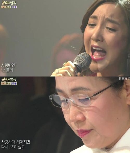바다는 천상의 목소리에 담은 사랑을 갈구하는 여인의 심경으로 관객의 눈시울을 붉게 만들었고 심수봉은 절규하는 바다의 노래에 뜨거운 눈물을 흘려 감동을 더했다.