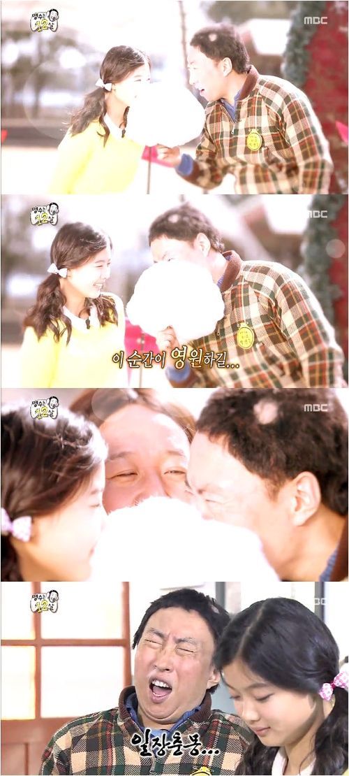 하지만 박명수와 김유정의 솜사탕 키스는 웃겼다. 두 사람이 솜사탕을 마주보고 있자 정준하가 갑자기 나타나 방해해서 허무하게 끝나는 것으로 마무리됐다. 아버지와 딸 뻘인 두 사람의 코믹스러운 솜사탕 키스는 웃음을 자아냈다.