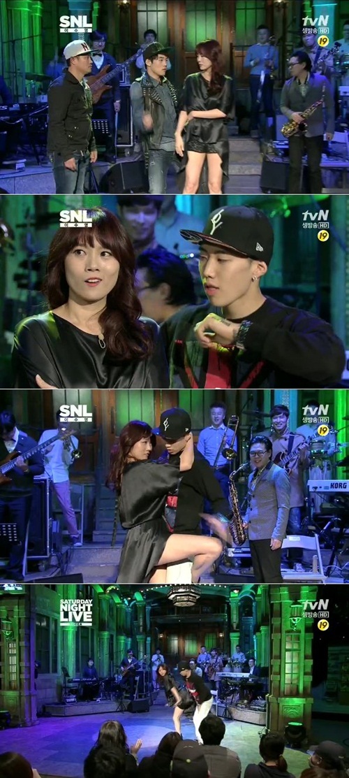 가수 이수영이 생방송 코미디 'SNL코리아' 최초 유부녀 호스트로 나서, 오프닝 무대부터 아찔한 섹시 춤사위를 가감없이 선보이며 고정크루 박재범을 깜짝 놀라게 했다.