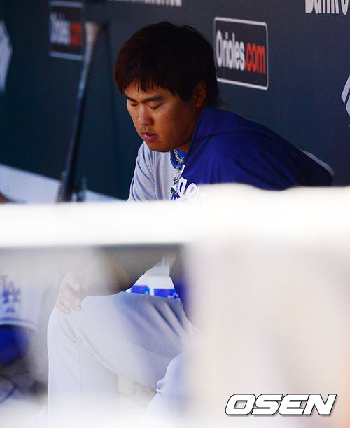 6회를 마치고 마운드를 내려온 류현진이 덕아웃에서 아쉬운 표정을 짓고 있다. / rumi@osen.co.kr