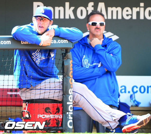 6회 덕아웃에서 LA 다저스 커쇼가 류현진의 피칭을 바라보고 있다. / rumi@osen.co.kr