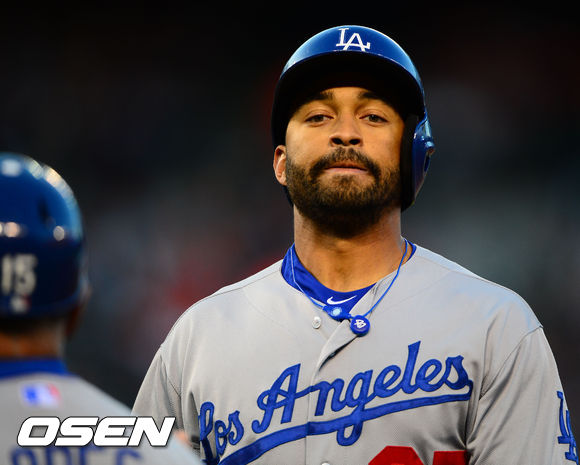1회초 2사 주자 1루 LA 다저스 헤어스톤 타석에서 볼티모어 선발 천웨인이 1루 주자 맷 켐프를 향해 두번 연속 견제구를 던지자 맷 켐프가 짜증난 표정을 짓고 있다.