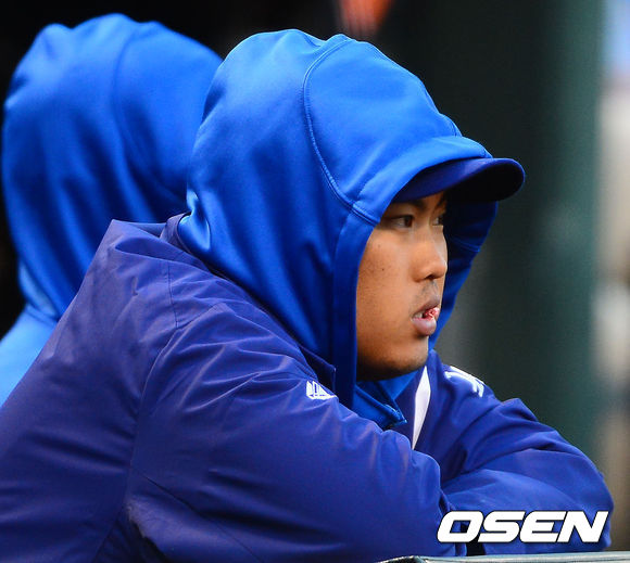 LA 다저스 류현진이 아쉬운 표정으로 경기를 지켜보고 있다. / rumi@osen.co.kr