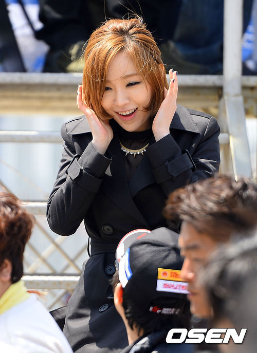 21일 오후 전남 영암 코리아인터내셔널서킷에서 진행된 2013 코리아 스피드 페스티벌(이하 KSF)에서 걸그룹 브아걸 가인이 스타팅 깃발을 흔들고 경기장을 빠져나가고 있다