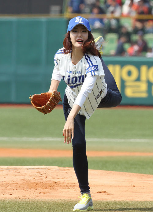 임현진(27) MBC 기상캐스터가 개념 시구의 진수를 선보였다. 대구가 고향인 임 캐스터는 21일 대구구장에서 열린 삼성-롯데전 시구자로 나섰다.
