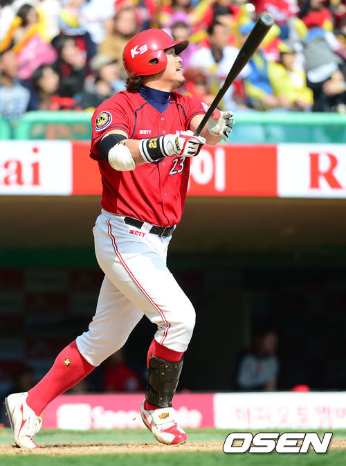 21일 오후 인천 문학야구장에서 열린 2013 한국야쿠르트 세븐프로야구 SK 와이번스와 KIA 타이거즈의 경기, 5회초 무사에서 KIA 최희섭이 중월 솔로 홈런을 치고 있다.