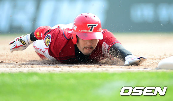 21일 오후 인천 문학야구장에서 열린 2013 한국야쿠르트 세븐프로야구 SK 와이번스와 KIA 타이거즈의 경기, 7회초 1사 1,2루에서 KIA 안치홍 타석 때 2루주자 이용규가 3루 도루에 성공하고 있다.