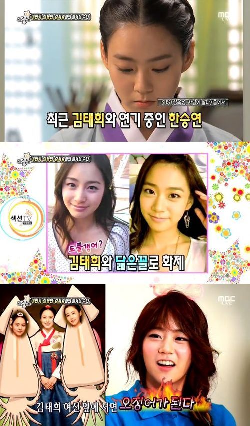 한승연은 수줍게 웃으며 "김태희 여신 옆에 서면 누구나 오징어가 된다는 말도 있는데.."라며 김태희와 닮은 꼴로 불리는 것에 대한 부담감을 드러냈다. 또 "연기하면서 정말 신경이 많이 쓰인다"며 김태희와의 외모 비교에 대한 부담감을 거듭 토로했다.