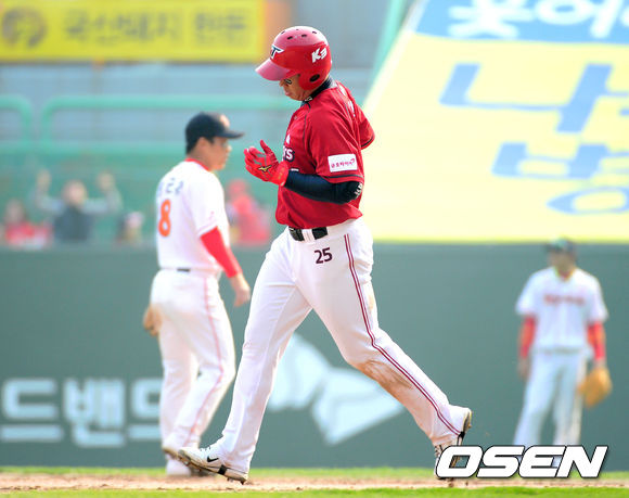 21일 오후 인천 문학야구장에서 열린 2013 한국야쿠르트 세븐프로야구 SK 와이번스와 KIA 타이거즈의 경기, 9회초 2사에서 KIA 이범호가 좌월 솔로포를 치고 그라운드를 돌고 있다.