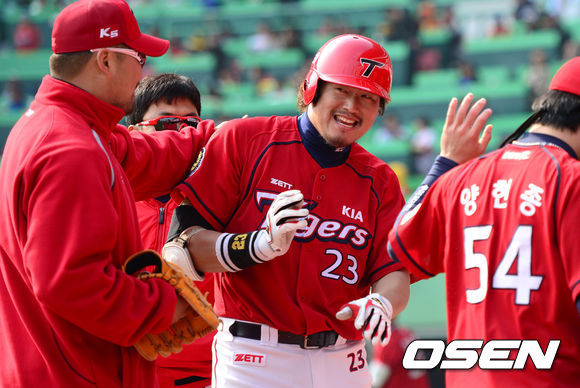 KIA는 21일 문학구장에서 열린 ‘2013 한국야쿠르트 세븐 프로야구’ SK와의 경기에서 홈런 두 방을 쏘아올린 최희섭을 비롯, 김상현 박기남 이범호까지 홈런 레이스에 동참하며 9-0으로 크게 이겼다. 대포를 펑펑 터뜨린 타선과 더불어 선발 양현종도 7이닝 무실점의 역투로 보조를 맞췄다. 이날 승리로 KIA는 11승4패를 기록하며 선두 자리를 굳건하게 지켰다.
