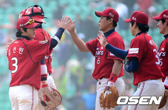 경기 종료 후 KIA 선수들이 승리의 기쁨을 나누고 있다. /sunday@osen.co.kr