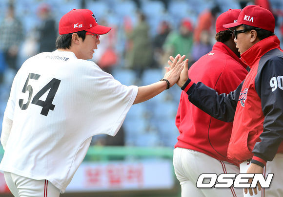 경기 종료 후 KIA 양현종이 선동렬 감독과 하이파이브를 하고 있다. /sunday@osen.co.kr