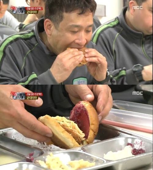 서경석은 "보통 고기 패티와 딸기잼을 같이 발라먹는 경우가 없는데 군대에서는 기가 막히게 맛있다"고 말했다. 샘 해밍턴도 처음에는 잘 이해하지 못했지만 맛있게 먹었다.