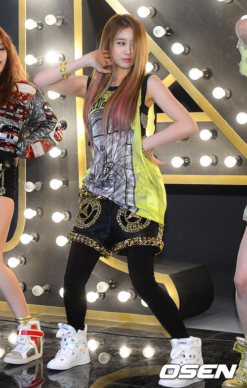 22일 오후 고양시 일산서구의 한 스튜디오에서 열린 티아라 엔포 '전원일기' 뮤직비디오 현장 공개에서 지연이 안무를 선보이고 있다.