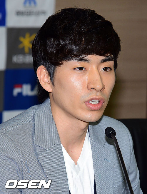 22일 오후 서울 올림픽 파크텔에서 진행된 '대한빙상경기연맹 포상금 수여식 식전 미디어데이'에서 이승훈이 질의응답 시간을 갖고 있다.