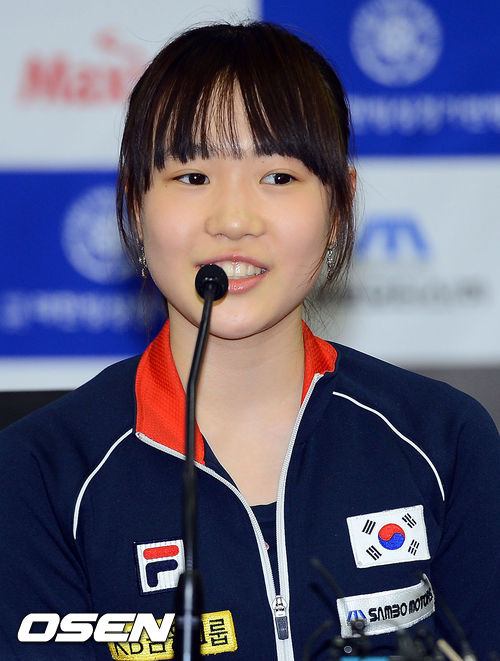 22일 오후 서울 올림픽 파크텔에서 진행된 '대한빙상경기연맹 포상금 수여식 식전 미디어데이'에서 박소연이 질의응답 시간을 갖고 있다.