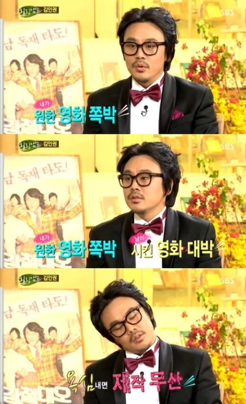 김인권은 22일 방송된 SBS 예능 프로그램 '힐링캠프, 기쁘지 아니한가'에 출연해 "영화 '해운대', '광해' 등은 주변에서 시키는 대로 한 작품인데 정말 잘됐다"고 말했다.