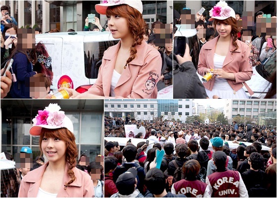 주니엘은 지난 22일 오후 서울 안안동에 위치한 고려대학교 캠퍼스를 기습 방문했다. 앞서 주니엘은 자신의 트위터에 '오늘 주니카를 타고 6시에 고려대 과학도서관으로 귀여운 남자를 찾으러 갑니다'라고 대학교 방문을 예고했다.