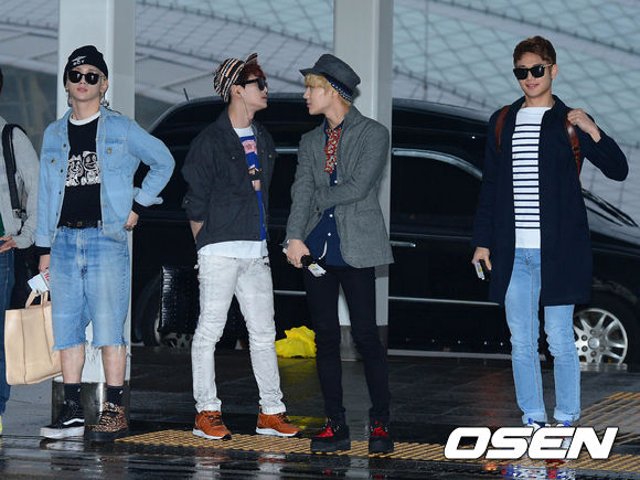 23일 오후 Mnet '엠카운트다운 니하오-타이완' 공연차 출국하는 샤이니가 인천국제공항 출국장에 도착해 횡단보도 신호를 기다디고 있다.