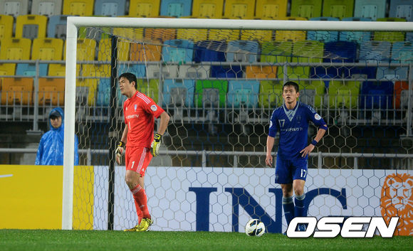 후반 수원 정성룔 골키퍼와 홍철이 센트럴 코스트 마이클 맥글린치에 선제골을 허용하자 아쉬워하고 있다./jpnews@osen.co.kr