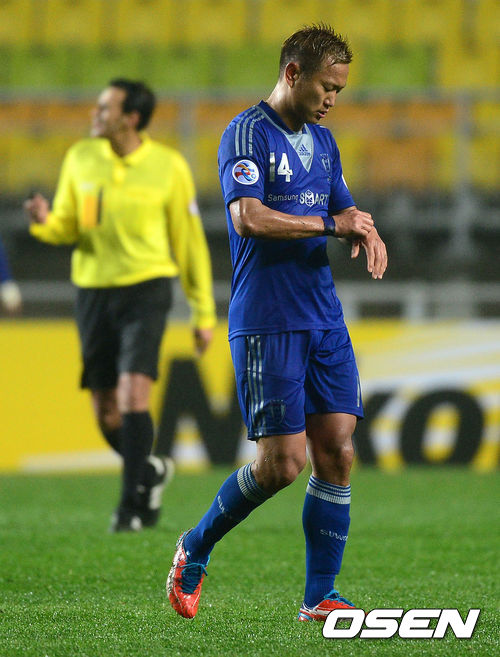 후반 수원 정대세가 센트럴 코스트 마이클 맥글린치에 선제골을 허용하고 아쉬워하고 있다./jpnews@osen.co.kr