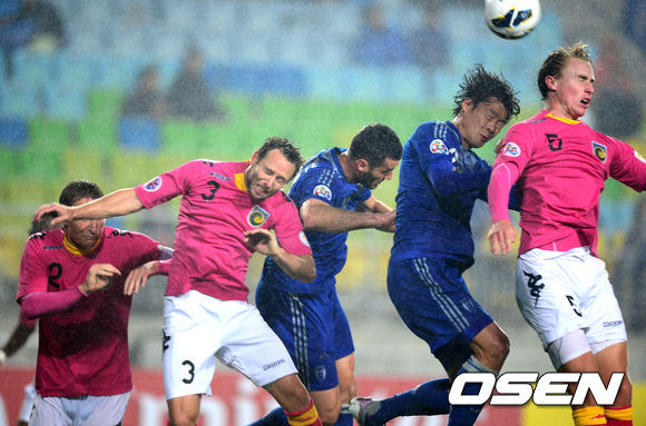 후반 수원 곽희주가 센트럴 코스트 수비수와 공중볼을 다투고 있다./jpnews@osen.co.kr