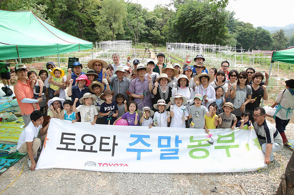'토요타 주말농부' 프로그램은 토요타 하이브리드의 운전자 대상으로 자연속에서 직접 수확의 보람과 친환경의 정서를 느끼며 이웃사랑도 실천해 개인의 정신적 육체적 건강은 물론, 사회의 지속 성장에도 함께 동참하자는 취지에서 한국토요타가 지난해부터 시작한 소비자참여 사회공헌 활동이다.