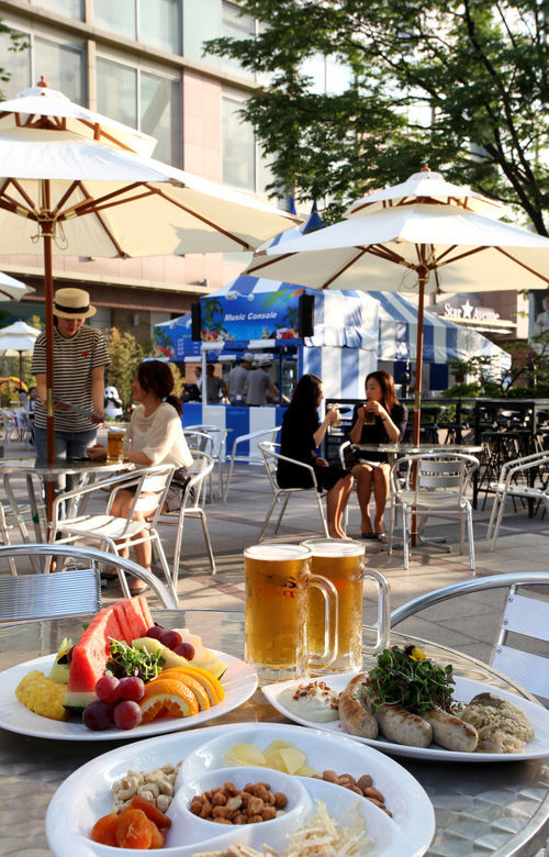 쿨팝스 프라자는 올해 메뉴를 강화해 선보인다. 아사히, 필스너 우르켈 등의 시원한 생맥주는 물론 여성들이 좋아하는 과일향의 린데만스비어, 코로나 등 다양한 종류의 세계 맥주가 준비 된다. 달콤한 버니니, 카펭듀 등의 와인, 커피, 소프트음료도 마련되고 더위를 날려줄 빙수, 아이스크림과 함께 먹기 좋은 코노 피자와 치즈, 가벼운 스낵도 판매한다. 가격은 1500원~2만원.