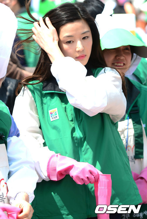 배우 전지현이 24일 오후 서울 광화문에서 열린 서울시사회복지협의회와 함께하는 '청정원 사랑의 반찬나눔' 행사에 참석해 김치만들기를 준비하고 있다.