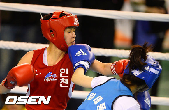 이시영이 강타를 허용하고 있다/ soul1014@osen.co.kr