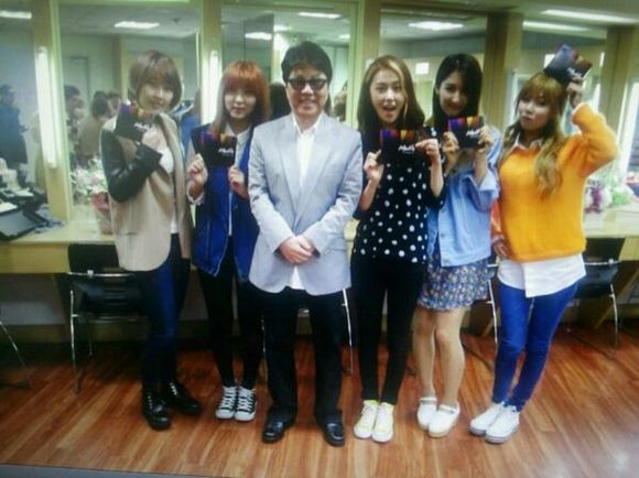 사진 속에는 조용필 옆에서 귀여운 포즈를 취하고 있는 멤버들의 모습이 담겨있다. 특히 멤버 모두 조용필의 CD를 들고 있고, 조용필 역시 환한 미소를 짓고 있어 눈길을 끈다.