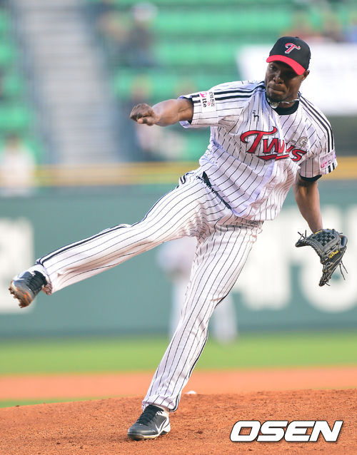 24일 오후 서울 잠실야구장에서 '2013 한국야쿠르트 세븐 프로야구' LG 트윈스 대 삼성 라이온즈의 경기가 열렸다. 1회초 삼성 공격 LG 선발 리즈가 힘차게 공을 던지고 있다.