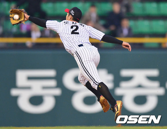 24일 오후 서울 잠실야구장에서 '2013 한국야쿠르트 세븐 프로야구' LG 트윈스 대 삼성 라이온즈의 경기가 열렸다. 3회초 삼성 공격 1사 주자없는 상황 LG 유격수 오지환이 1번 배영섭의 내야 깊은 타구를 잡아내고 있다. 하지만 송구 타이밍을 놓치며 타지는 세이프.